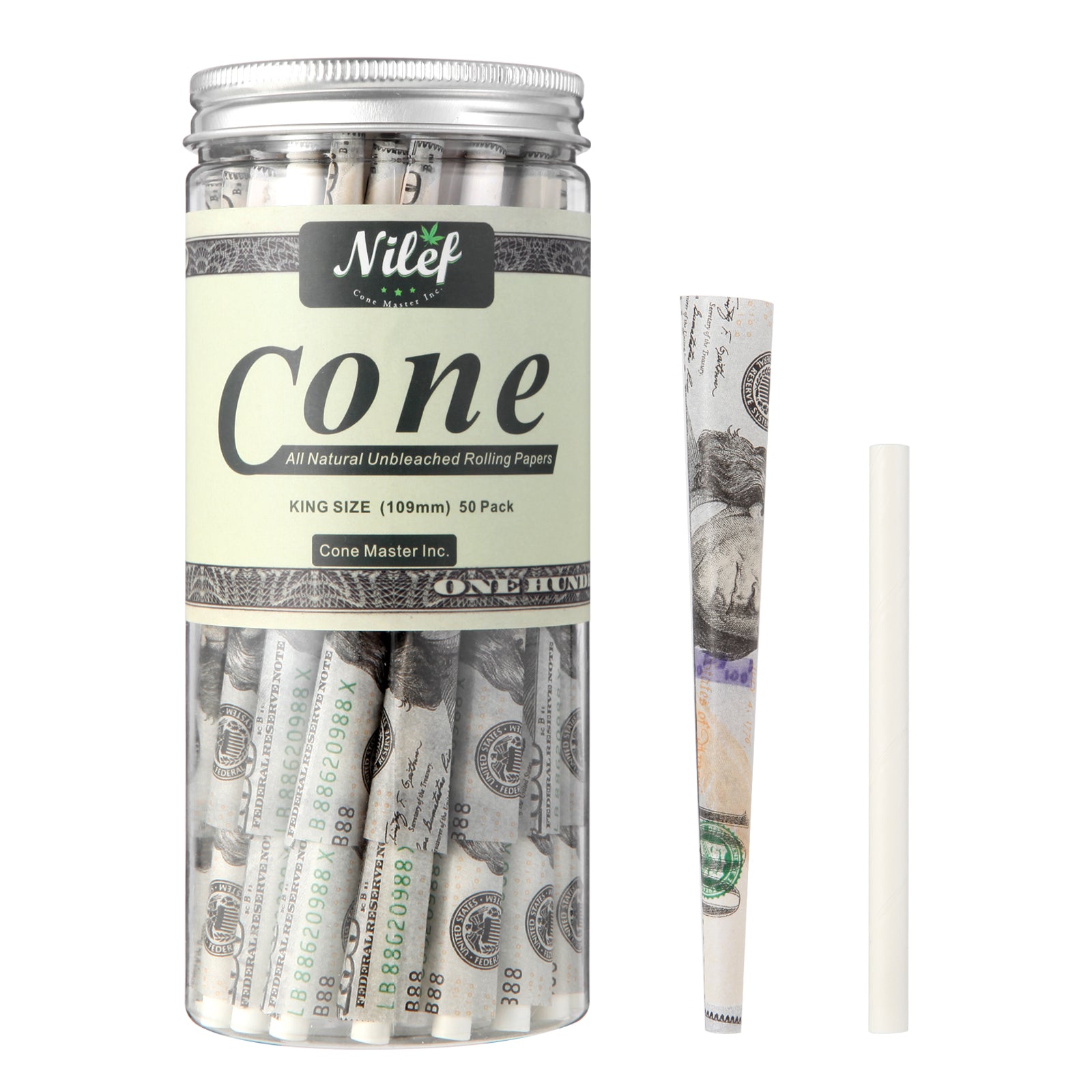 109mm Pre Rolled Cones | "W" Filter Tip | 100 Dollar Bill Paper | 50 Pack Bulk Cones (D1470B) - Starting at 1 Case=100 Jars =5,000 Cones