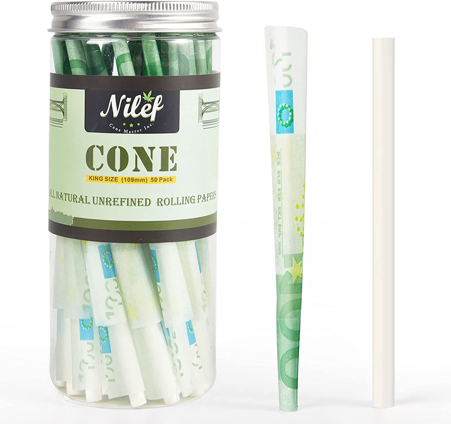 King Size Pre Rolled Cones | "W" Filter Tip | Euro Dollar Paper | 50 Pack Bulk Cones (D1470C) - Starting at 1 Case=100 Jars =5,000 Cones