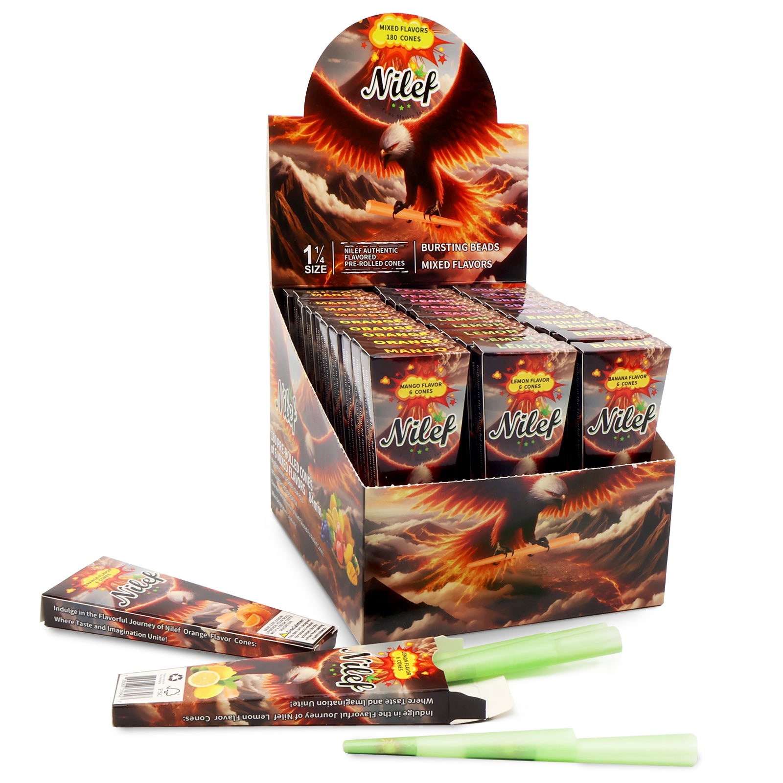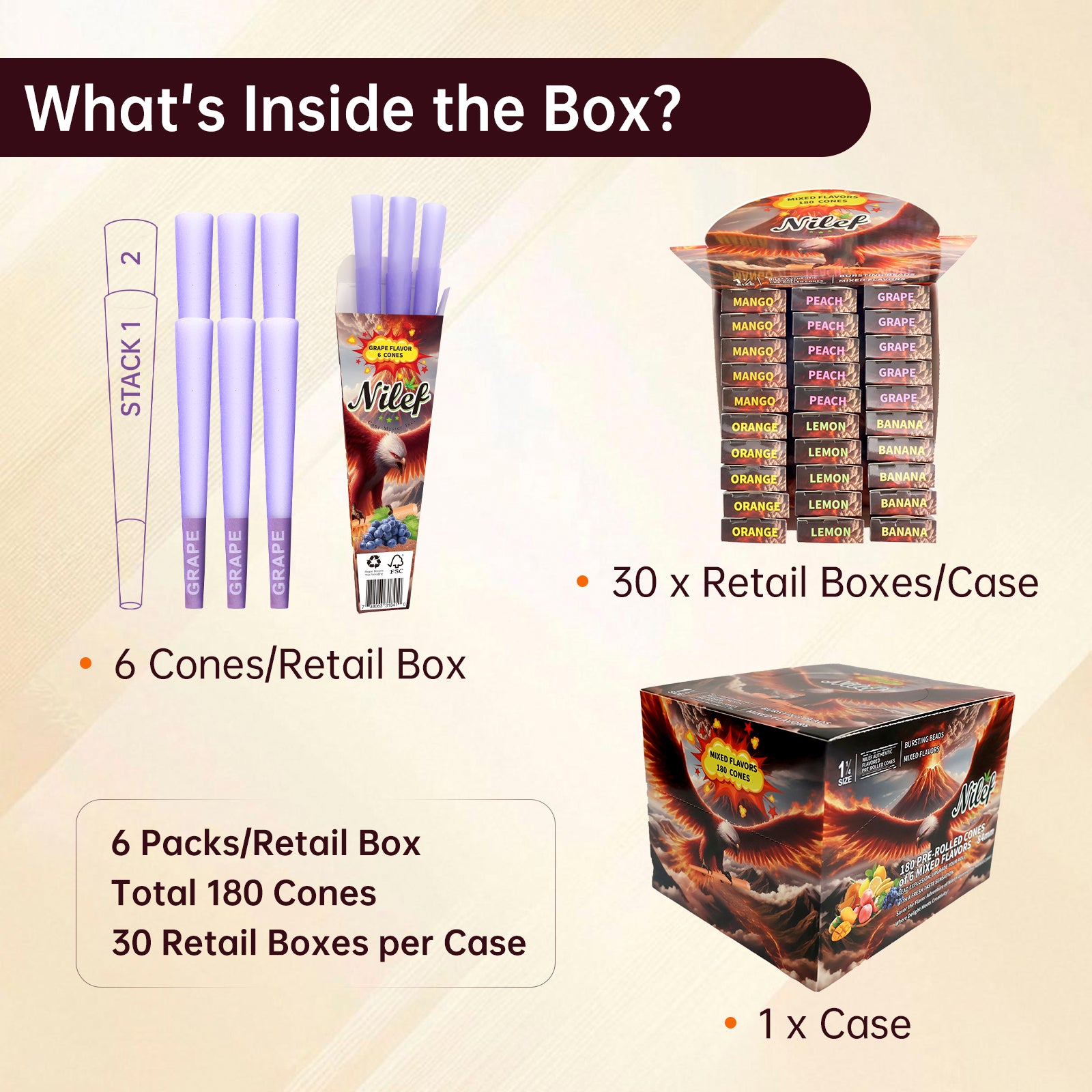 Each set includes 30 sealed retail boxes, each containing 6 flavored pre-rolled cones with filter tips that include a built-in capsule—totaling 180 cones. Ideal for individual resale, boutique shops, and convenient retail presentation.
