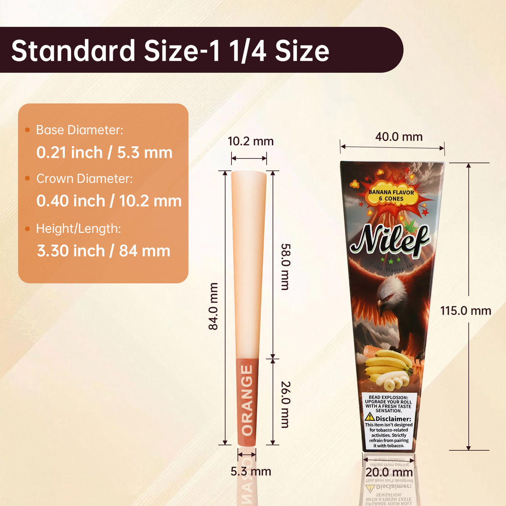 Made from natural unbleached rolling paper, these flavored cones feature “W”-shaped filter tips with flavor bead. Designed for a smooth, consistent experience with a classic 1 1/4 size (84mm cone / 26mm tip) and slow, even burn.